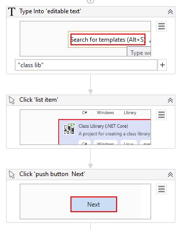 Before starts recording, open Visual Studio 2019 then in “Create VS Project” use Open Application,