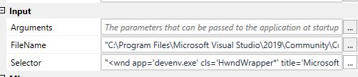 For ex: In above activity we are trying to open VS 2019, we have provided the file path to open but how robot can confirm, opened app is correct one. SO for this we need to click on “Indicate window on screen” and click on startup page of VS. UiPath will generate below string in “selector” property
