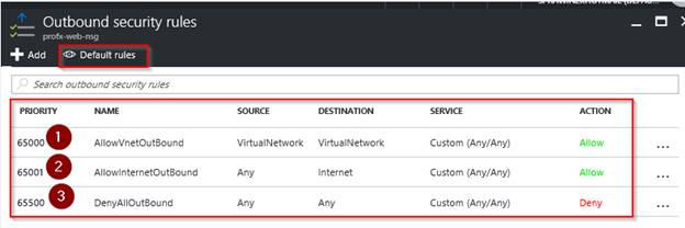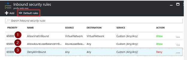 - Default Inbound and Outbound Rules that get created when you create a Network Security Group.