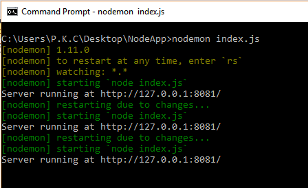 After successful installation of Nodemon, you can run any Node.js application using the “nodemon” command.