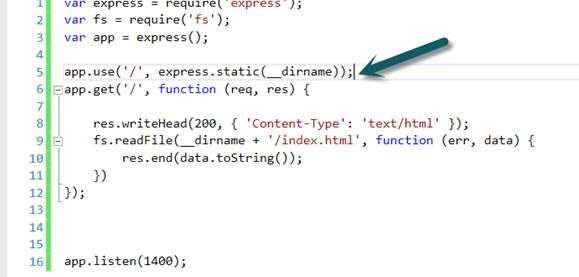 Express defines an “express.static” in-built middleware function that handles such types of requests. Let’s modify our code and view the effects. Now, add “app.use('/', express.static(__dirname));” line of code in your application.