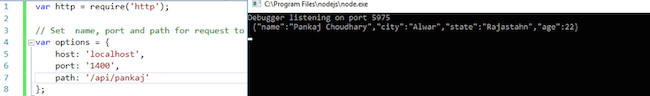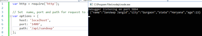 In the previous example, we created the Web Servers. Now, we create a Web client and send the request to Web Server, which we created in previous example. Create a new Node.js project and save the code, mentioned below in JS file.