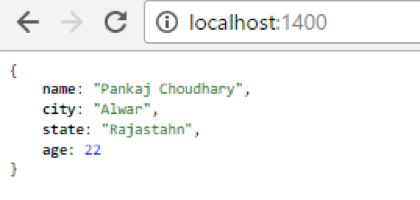 So far, we return simple text and HTML data as the response of request. In the same manner, we can return JSON data. JSON is the most important format of Node.JS because in Node.js, the data is transferred in form of JSON. Let’s take a simple example of JSON formatted data.