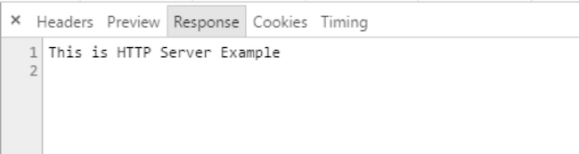 You can see that status code is “200” and Content type is “text/plain”, which we defined in our program. When you open Response tab, it will show the data that it gets in the form of response from the Server.