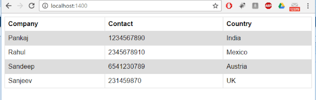 In the previous example, we send the plain text. Now, we learn how to send HTML data to the response of request. First, create HTML file named as “index.html” and insert some data into the file.