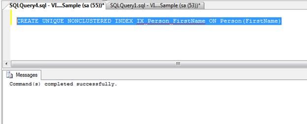 - CREATE UNIQUE NONCLUSTERED INDEX IX_Person_FirstName ON Person(FirstName)
