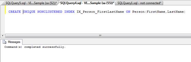 - CREATE UNIQUE NONCLUSTERED INDEX IX_Person_FirstLastName ON Person(FirstName,LastName)