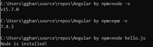 - Test Node. To see if Node is installed, open the Windows Command Prompt, Powershell or a similar command line tool, and type node -v. This should print a version number, so you’ll see something like this v0.10.35.