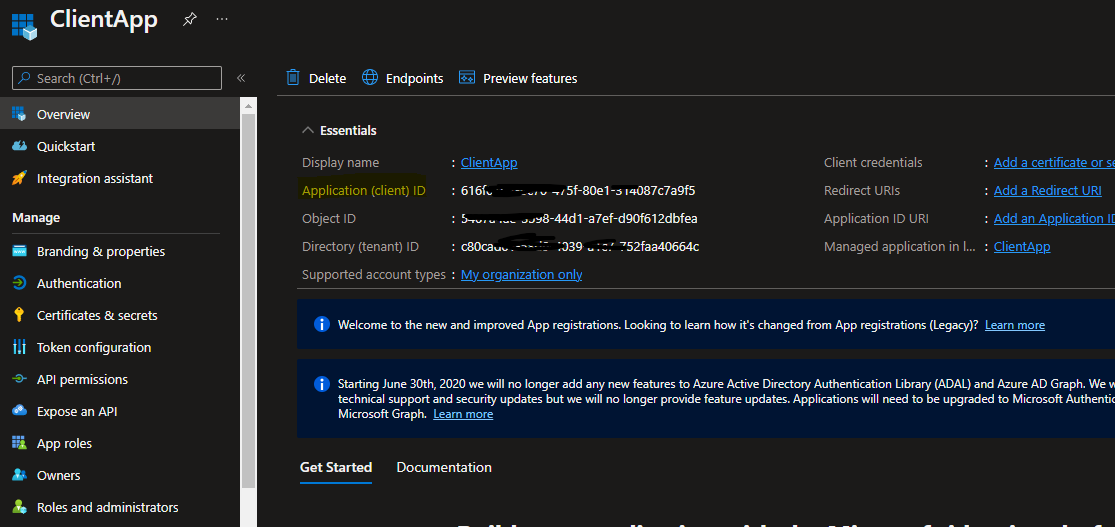After creating the ClientApp, just copy the Application(Client) Id and keep it somewhere as it will use later.