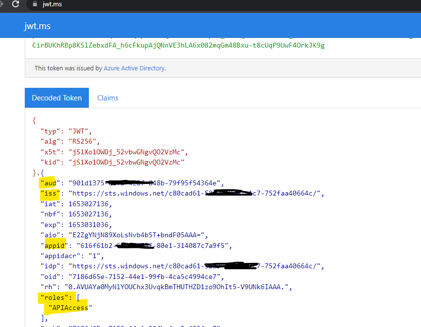 Now you can decode your token to go on jwt.ms site(This step is optional). Here you can see all the details which token contains; just verify the role we had added.