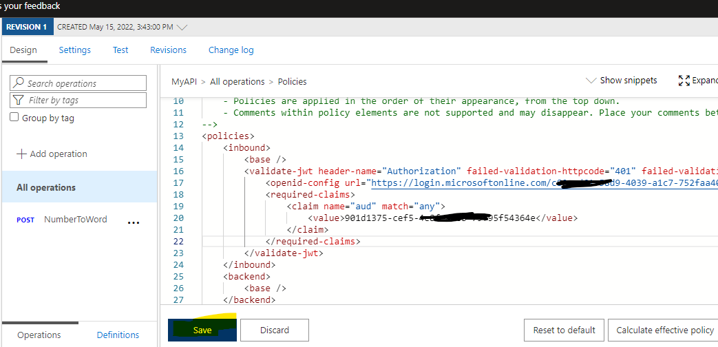 Now we will add policy and test our API under API Management that we have created in the last couple of articles(I have mentioned the article URL in the beginning)