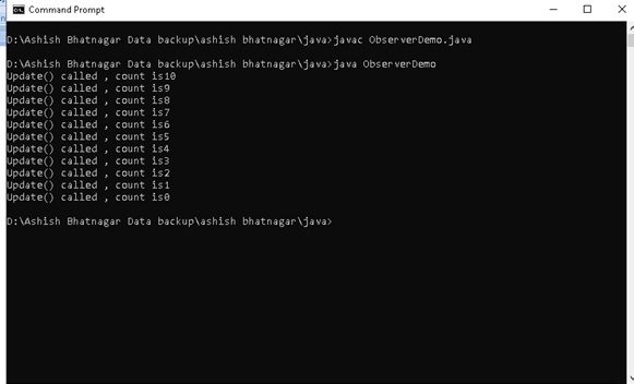 System.out.println("Update() called , count is" + ((Integer) arg).intValue());