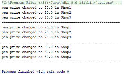 Below is the result screenshot. In the result, we can see that change in pen price value has notified all shops