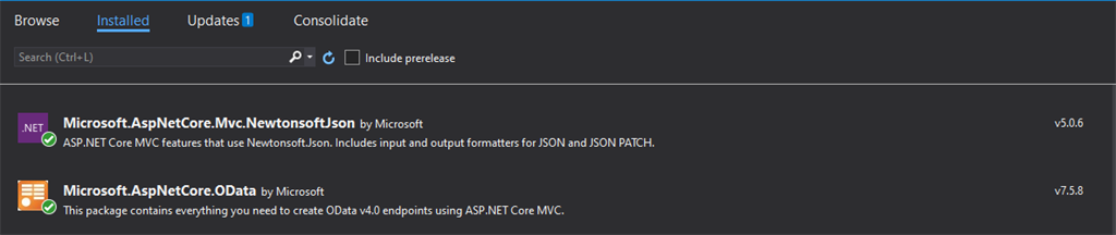 The first thing to install is to install the ASP.NET Core OData Nuget package and also we need the ASP.NET Core NewtonsoftJson for input and output format parameters.
