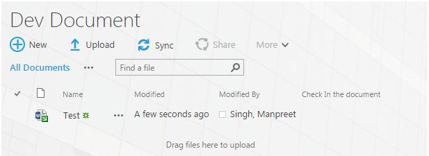 - I have created a document library “Dev Document” and have uploaded a document and named it “Test.”