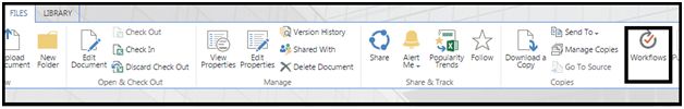 - In Dev Document, Click on the Library tab on the Top ribbon and click on Nintex Workflows.