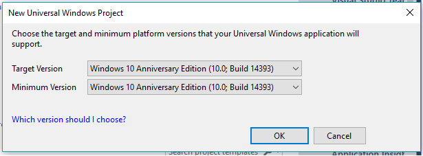 After choosing the target and minimum platform version that your Windows Universal application will support (Windows Anniversary Update (10.0.14393.0)), the Project creates App.xaml and MainPage.xaml.