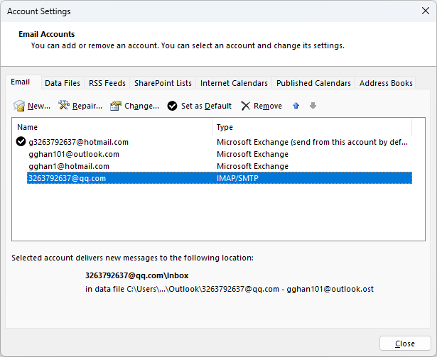 At this point, for a third-party email to add the email account to Outlook, depending on its provider that one might need an app password, also known as an application password. This is a different password than the regular email account password and also different from, in QQ case, an independent password.