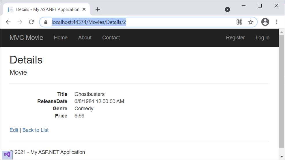 Examine our MoviesController created from the PreSetup app, the action named Index() is the Master and the action Details(int? id) is the Detail. The Master action returns a list of movie titles and the Details(int? id) action returns the details for the selected movie.