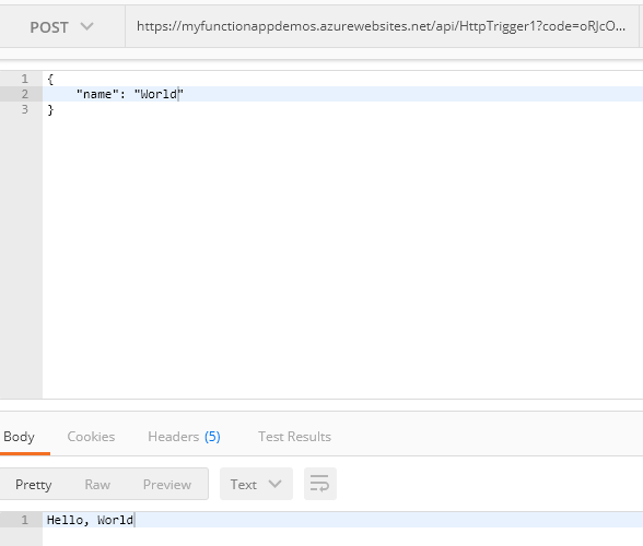 Basically, this predefined method will process the request to process the request body and concatenate it with the string “Hello”. If there is no request body, it will return as a bad request.