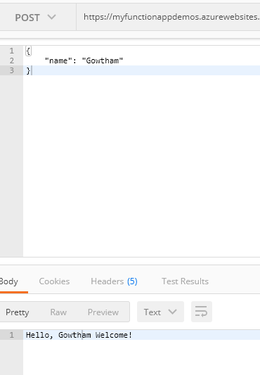 Yes, we got a response based on our request. Now, modify the string that is going to return from the Run method in the run.csx file.