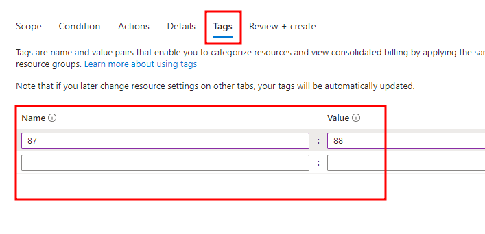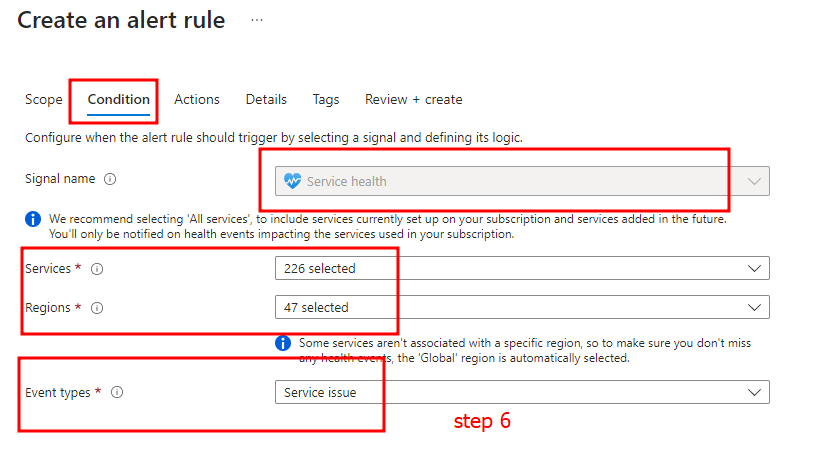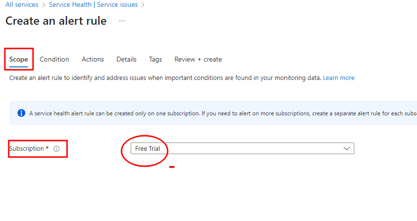 Step 5. After entering the subscription details, now we can enter condition details like region, services, and name.