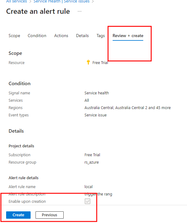 Step 8. After entering the project details, we need to move for TAGS and Review+Create and enter the values of the tags as per project needs after validation is completed. We need to use this Azure Service Health.