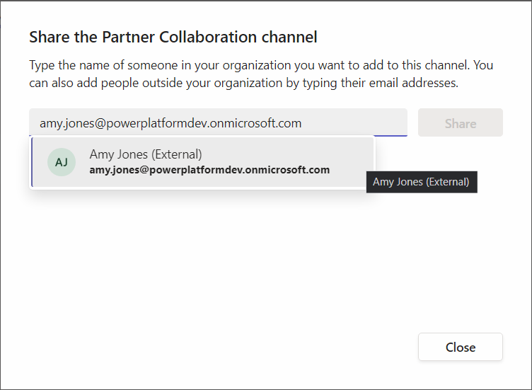 Owners of a shared channel can invite external users to join the channel, if Azure AD external sharing policies are configured.
