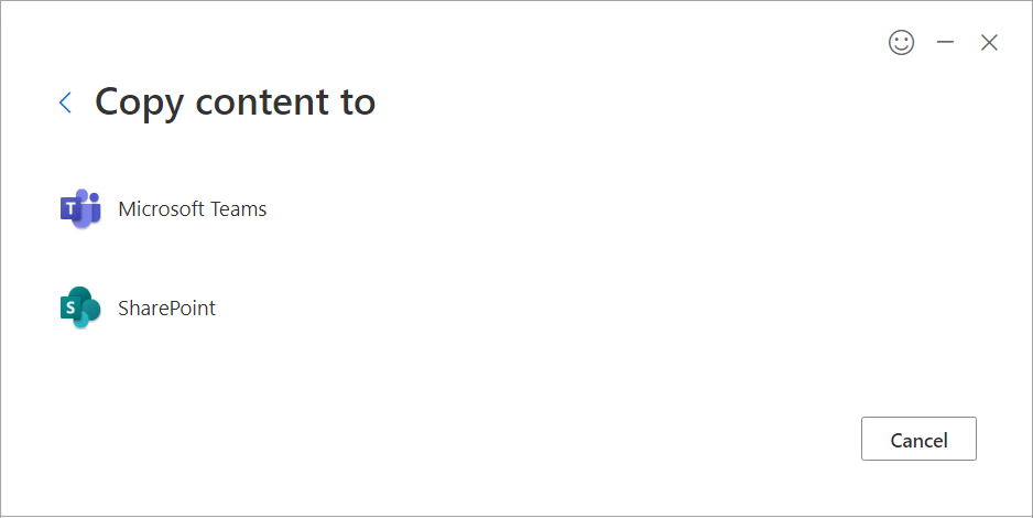 In the next screen, we can select where to copy the content including Microsoft Teams and SharePoint.