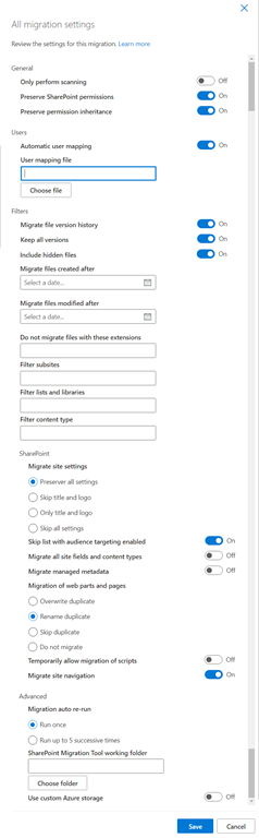 In the last screen, we can choose the settings to perform the migration. The View all settings option will present more control options over the migration.