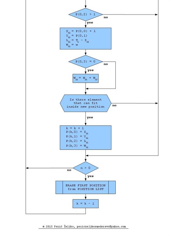 - Coordinates of new position can only be the same as coordinates of lover right or upper left corner of previously packed element.
