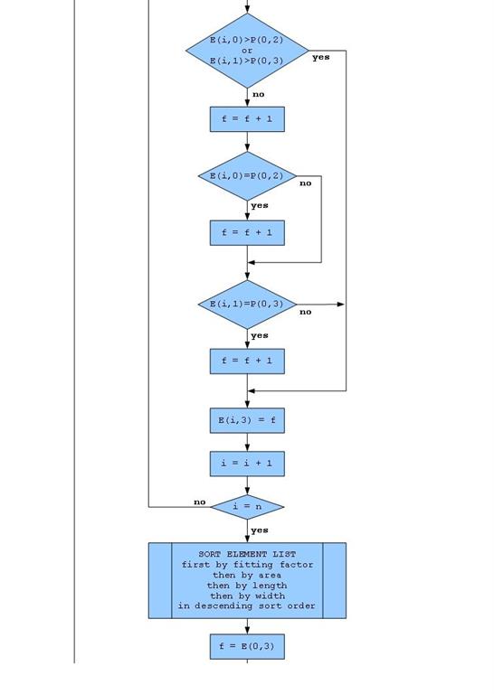 - When fitting factor is calculated for all elements, they are sorted in descending sort order first by fitting factor value, than by value of area, then by value of length, then by value of width.