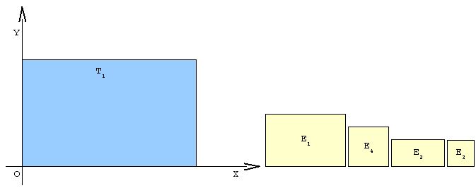 - Free surface on table does not meet the requirement for new position because of it's shape and it needs to be adjusted. Accordingly to request for packing direction, along X axis of table, with horizontal orientation exclusively, Position 1 is splited into two rectangular shapes with horizontal line from the upper right corner of the last placed element to the right edge of Position 1.