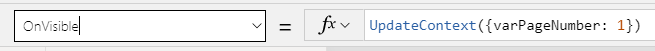 Create a Blank Canvas App. In the “OnVisible” method of the screen, use “UpdateContext({varPageNumber:1})”.