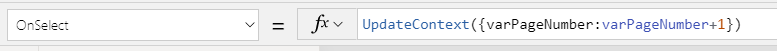 In the “OnSelect” method of the button, use “UpdateContext({varPageNumber: varPageNumber + 1})