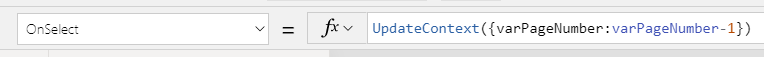 In the “OnSelect” method of the button, use “UpdateContext({varPageNumber: varPageNumber - 1}).