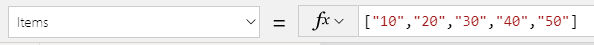 In the “Items” property of the dropdown control. Define the values as [“10”,”20”, “30”, “40”, “50”]. I have chosen the values based on my data, if you want different values, then update them accordingly.