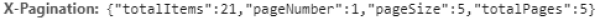 - Back in the controller, we add the pagination header to HTTP response. This header can be read by the client and looks like.