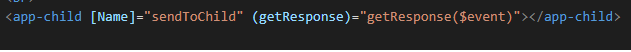 - <app-child [Name]="sendToChild" (getResponse)="getResponse($event)"></app-child>