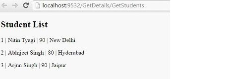 - < p > @i.StudentID | @i.Name | @i.Marks | @i.City < /p>