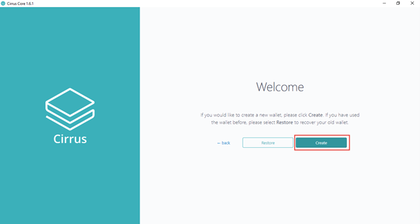 You will get an option to Restore or Create as depicted below. Here we are going to Create a new wallet so click on Create Button as depicted below.