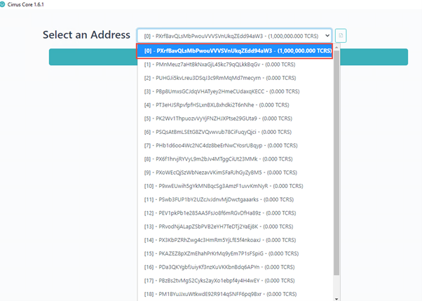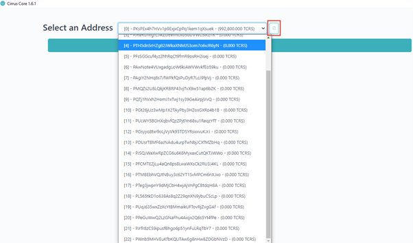 Then copy the address and keep it somewhere. This is the address where you will send a transaction from the default wallet with the wallet name cirrusdev where you have TCRS available.