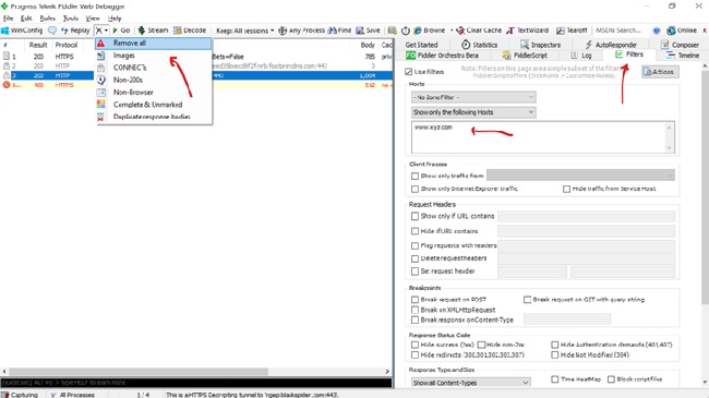 www.xyz.com, then you can set the host filter and remove all previously captured sessions like below in the screenshot