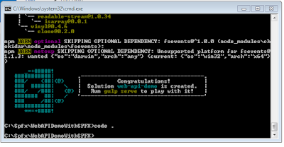 Ensure you replace the URLs in the code with the URL of your API. Now it is time to test our web part. In the command prompt, go to the directory for your web part and type one after the other -