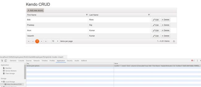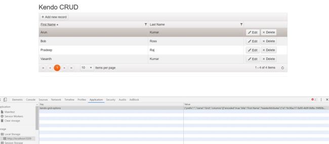 From the image, shown above, it is clear that the local storage is created and the complete state of Kendo Grid is saved in it, when the page loads.