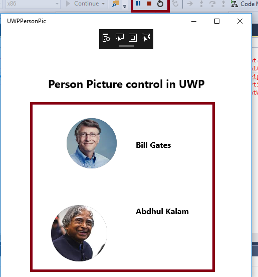 Now you have successfully tested PersonPicture control in XAML and UWP environment using Visual Studio 2017.