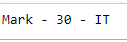 print(emp.name, "-", emp.age, "-" , emp.dept)