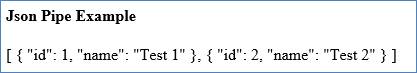 JSON pipe is very similar to “JSON” filter in Angular 1.x. It converts the JjavaScript object to JSON string and displays that on screen.