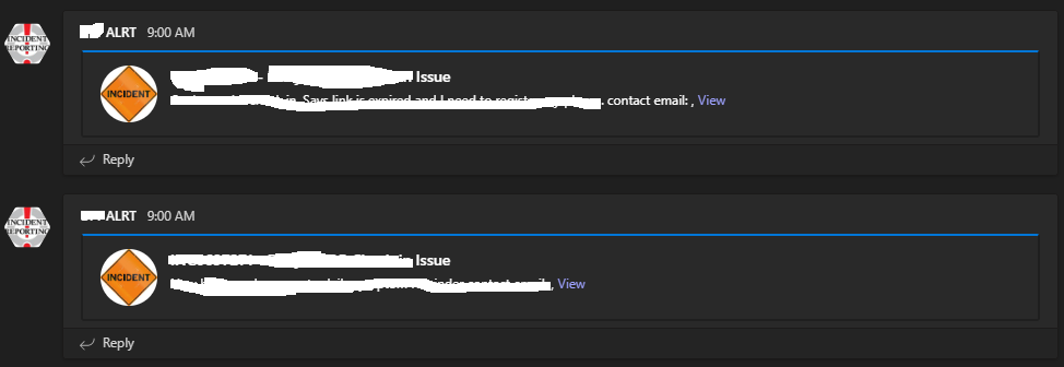Here's a sample card posted to my teams channel. Please note, I have wiped out some entries, just so you don't get to see the incident descriptions :).