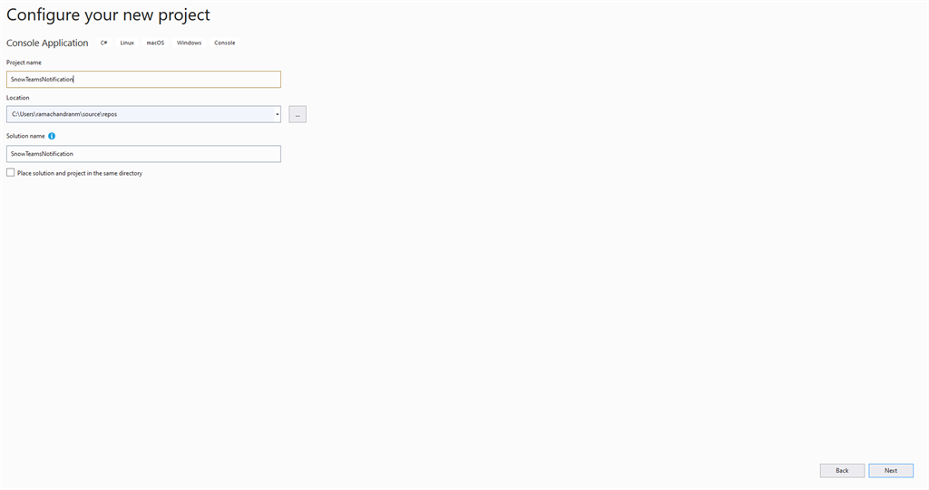 We will also create a Notification class with methods to retrieve ServiceNow incidents assigned to a specific group and then push the incidents as adaptive cards to a MS Teams channel. We will have this all in our Notify method which will be called from our entry point method (Main) in program.cs.